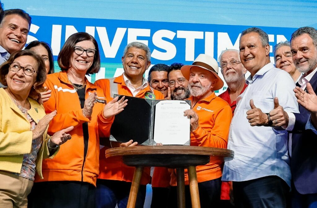 O governador Jerônimo Rodrigues e a presidente da Petrobras, Magda Chambriard, assinaram, na tarde desta quinta-feira (9), um protocolo de intenções que prevê a utilização do Estaleiro São Roque do Paraguaçu, em Maragogipe, como canteiro de obras do novo Sistema Rodoviário Ponte Salvador-Itaparica. O acordo foi celebrado durante evento que contou com a presença do presidente Luiz Inácio Lula da Silva e do ministro-chefe da Casa Civil, Rui Costa.