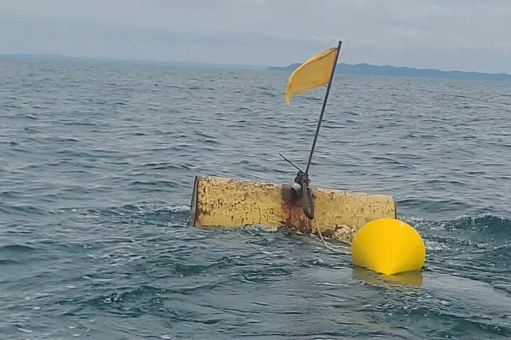 Sinalização já implantada na balsa Jaguaribe: boia de arinque + boia auxiliar + bandeira